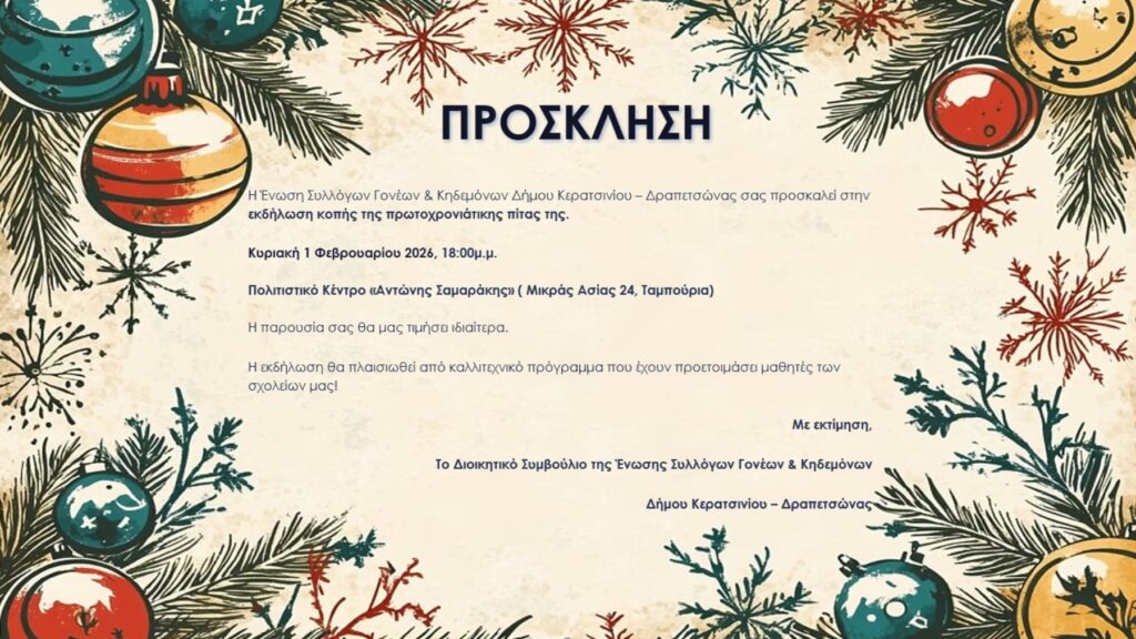 ΑΝΑΚΟΙΝΩΣΗ Το Διοικητικό Συμβούλιο της Ένωσης Γονέων & Κηδεμόνων Αιγάλεω σε συνέχεια προηγούμενης ανακοίνωσης και απόφασης τονίζει ότι η πραγματική αναβάθμιση της δημόσιας εκπαίδευσης δεν περνά μέσα από επιλεκτικούς θεσμούς, αλλά μέσα από τη συστηματική ενίσχυση όλων των σχολείων της γειτονιάς, με επαρκή και σταθερή χρηματοδότηση, σύγχρονες υποδομές, μόνιμο προσωπικό και ουσιαστική παιδαγωγική στήριξη. Οποιαδήποτε πολιτική […]