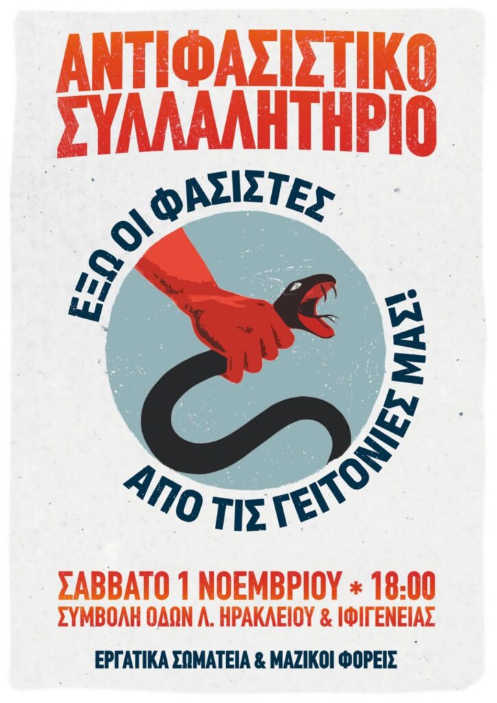 Η Ένωση Γονέων Ηρακλείου Αττικής συμμετέχει μαζί με τα Εργατικά Σωματεία και τους μαζικούς φορείς στο αντιφασιστικό συλλαλητήριο, το Σάββατο 1 Νοεμβρίου 2025, στις 18.00, στη συμβολή των οδών Λ. Ηρακλείου & Ιφιγενείας. Σας επισυνάπτουμε την αφίσα και σας κοινοποιούμε και την ανακοίνωση του Συλλόγου Εκπαιδευτικών Πρωτοβάθμιας Εκπαίδευσης Γ. Σεφέρης