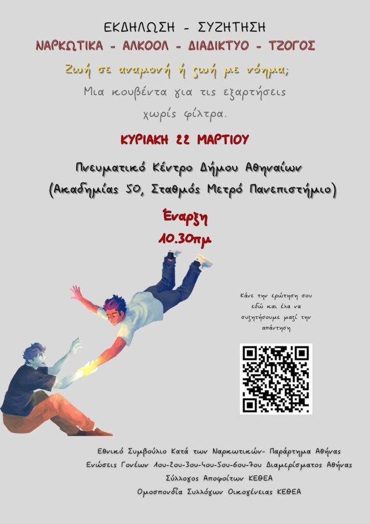 Αγαπητοί γονείς, Σας στέλνουμε πρόσκληση για μια πολύ ενδιαφέρουσα εκδήλωση – συζήτηση. Δείτε στα συνημμένα αρχεία για λεπτομέρειες. Παρακαλούμε πολύ, προωθήστε τα στους γονείς – μέλη σας. Υπενθυμίζουμε ότι η ημερομηνία για να σταλούν ερωτήσεις είναι μέχρι την Κυριακή 8 Μάρτη.