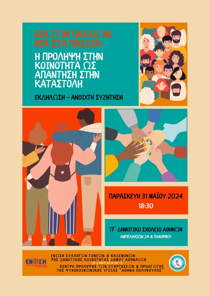 Σας προωθούμε τις λεπτομέρειες για την εκδήλωση που διοργανώνει η Ένωση Γονέων της 7ης Δ.Κ. της Αθήνας σε συνεργασία με το Κέντρο Πρόληψης Εξαρτήσεων & Προαγωγής Ψυχοκοινωνικής Υγείας “Αθηνά Πολύβουλος με θέμα: