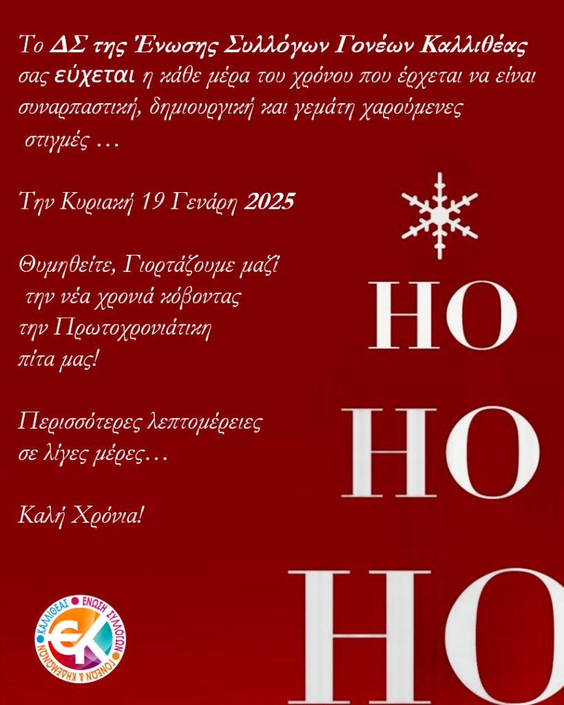 Καλή Χρονιά! Save the Date για την Κοπή της Πίτας μας στις 19.01.2025