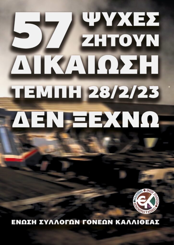 “57 ΝΕΚΡΟΙ ΖΗΤΟΥΝ ΔΙΚΑΙΩΣΗ Τέμπτη 28.2.2023 Δεν ξεχνώ.”
