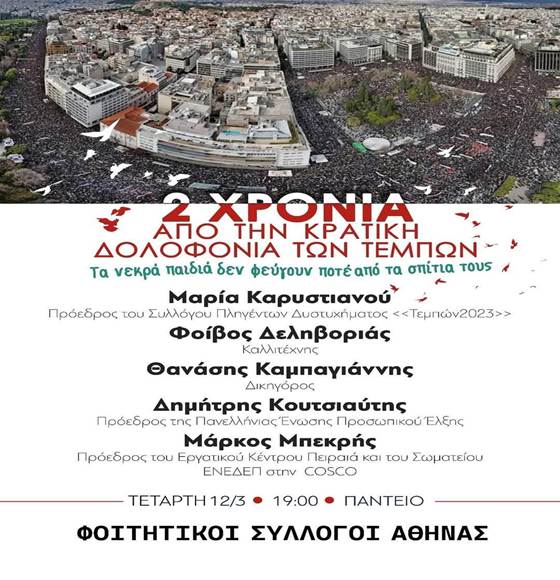 Στην εκδήλωση που διοργανώνουν οι Φοιτητικοί Σύλλογοι Αθήνας, την Τετάρτη 12/3, 7 μ.μ., στο Πάντειο Πανεπιστήμιο,