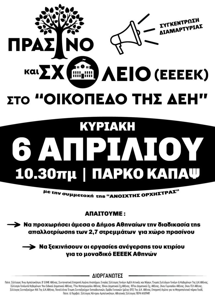 και την αφίσα της κινητοποίησης την οποία συνδιοργανώνουμε την Κυριακή 6 Απρίλη στο πάρκο ΚΑΠΑΨ στους Αμπελόκηπους για τον σκοπό αυτό