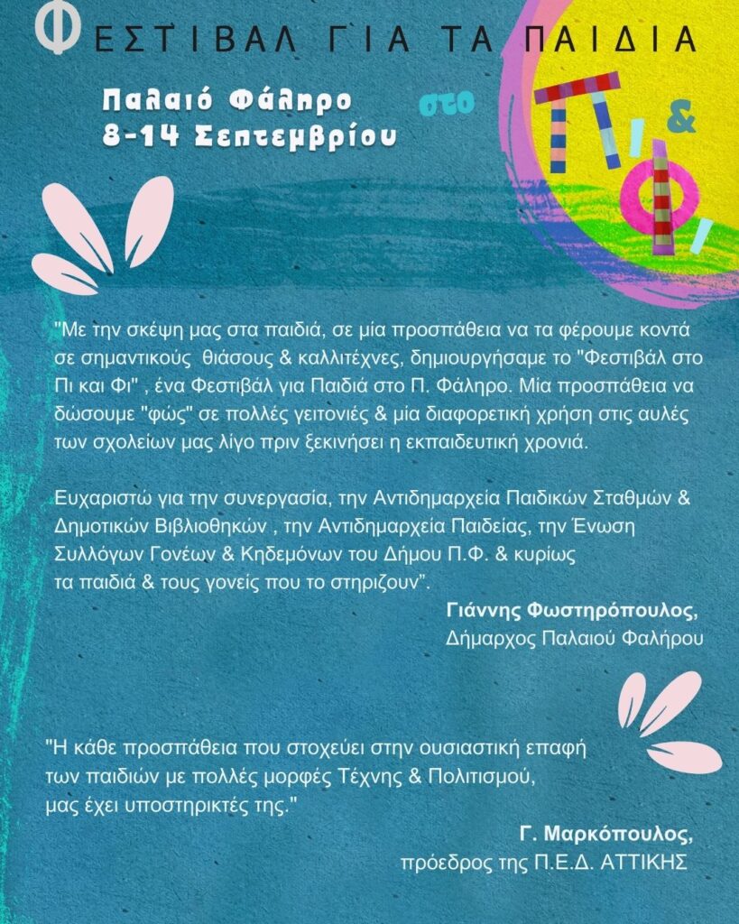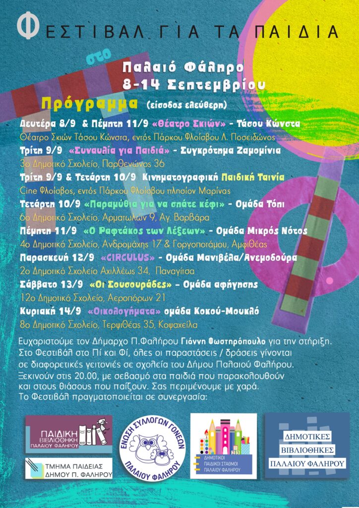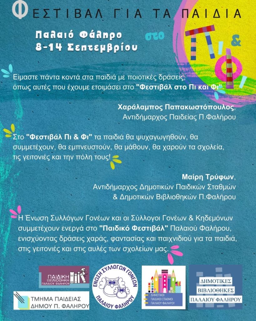 Η Ένωση Παλαιού Φαλήρου συμμετέχει στο “Φεστιβαλ στο Πι και Φι” ακολουθεί το πρόγραμμα ανά ημέρα. Ομοσπονδία Γονέων Περιφέρειας Αττικής Ένωση Παιανίας-Γλυκών Νερών: ΠΡΟΣΚΛΗΣΗ ΣΥΜΜΕΤΟΧΗΣ ΜΑΘΗΤΩΝ ΣΕ ΑΝΤΙΠΟΛΕΜΙΚΗ ΣΥΝΑΥΛΙΑ Ένωση Νέας Σμύρνης: Πρωτοβουλία συλλογής καινούργιων σχολικών ειδών Σάββατο 06/09 & Κυριακή 07/09