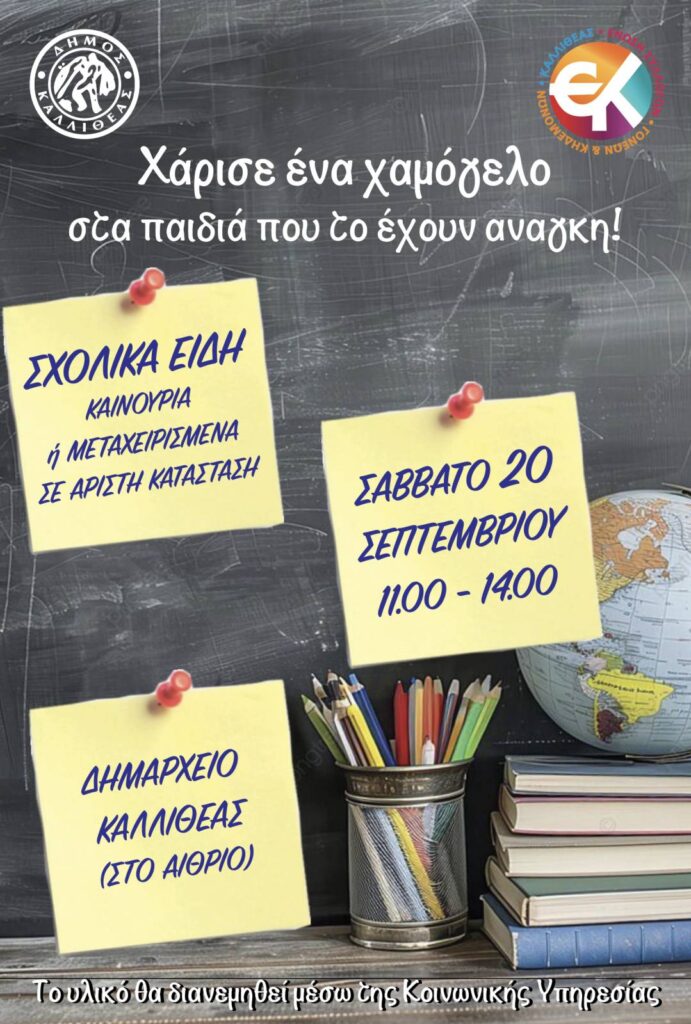 Η Ένωση Συλλόγων Γονέων Καλλιθέας σας προσκαλεί να συμμετάσχετε σε μια προσπάθεια αλληλεγγύης, με σκοπό τη συλλογή σχολικών ειδών για παιδιά της πόλης μας που τα έχουν ανάγκη.