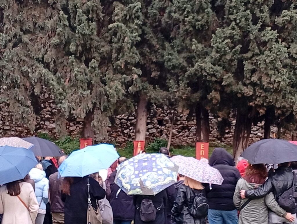 Παρ’ όλο που ο καιρός δεν ήταν με το μέρος μας, η συμμετοχή ήταν μαζική από όλες τις ηλικίες και τα λόγια του ξεναγού συγκίνησαν αφού μας έφεραν σε επαφή με εικόνες πρόσωπα και καταστάσεις του ηρωικού λαού της Καισαριανής την περίοδο 1940 – 1944, των 200 κομμουνιστών που με ψηλά την γροθιά, παλεύοντας για μια κοινωνία χωρίς εκμετάλλευση ανθρώπου από άνθρωπο δε δείλιασαν μπροστά στο εκτελεστικό απόσπασμα!