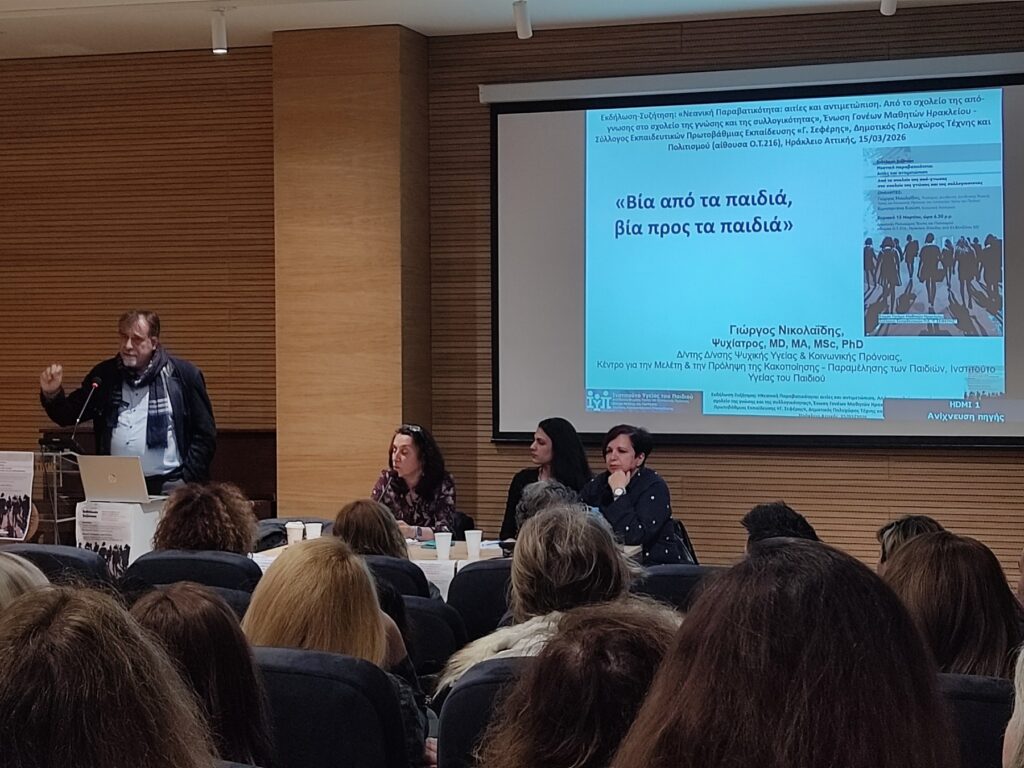 Με μεγάλη επιτυχία πραγματοποιήθηκε η εκδήλωση που συνδιοργάνωσε η Ένωση Γονέων Μαθητών Ηρακλείου Αττικής με τον Σύλλογο Εκπαιδευτικών Πρωτοβάθμιας Εκπαίδευσης “Γ. Σεφέρης”, την Κυριακή 15/3/2026 στο Ο.Τ. 216 με ομιλητές την κοινωνική λειτουργό Κωνσταντίνα Κιούση και τον διευθυντή ψυχικής υγείας και κοινωνικής πρόνοιας του Ινστιτούτου Υγείας του Παιδιού, Γιώργου Νικολαΐδη.