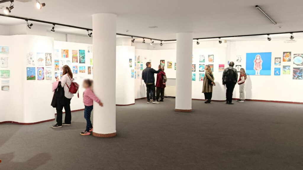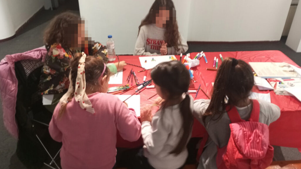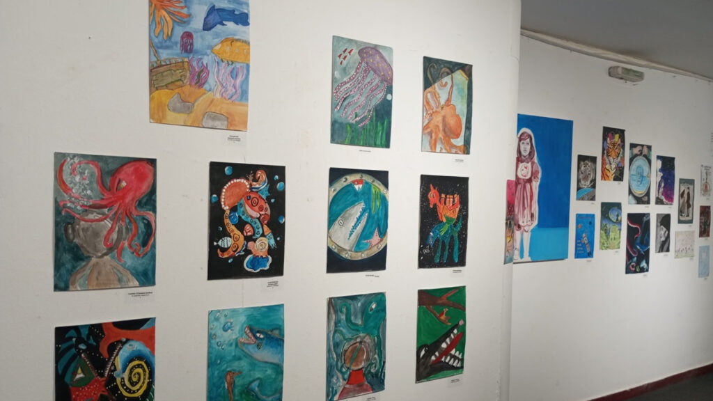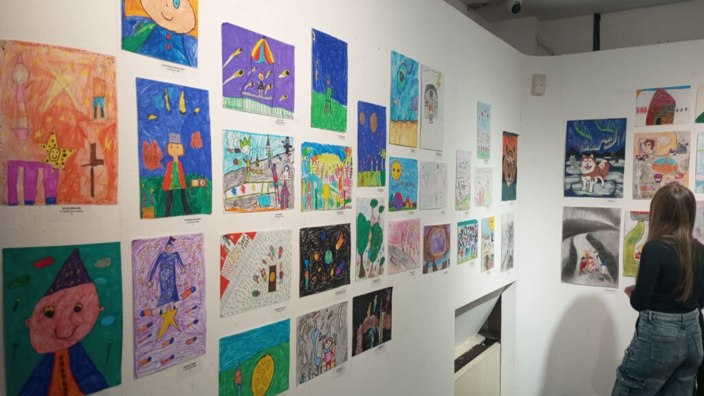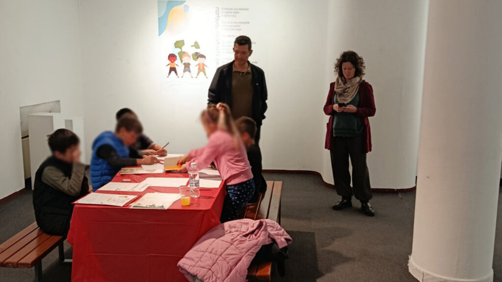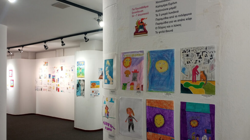 Στο χώρο της έκθεσης η ζωγραφική συνεχίζεται, ενώ τα παιδιά έχουν την ευκαιρία να ξεφυλλίσουν ή να αγοράσουν τα λογοτεχνικά βιβλία στο βιβλιοπωλείο που λειτουργεί.