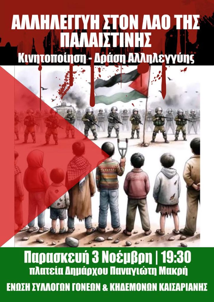 2023_11_02_Καλεσμα-της-Ενωσης-για-κινητοποιηση-στην-Καισαριανη-για-την-ΠαλαιστινηΛήψη Ομοσπονδία Γονέων Περιφέρειας Αττικής Ένωση 7ης Δημοτικής Κοινότητας Αθήνας: Ανακοίνωση Κάλεσμα για το Πανεκπαιδευτικό Συλλαλητήριο 6 Νοεμβρίου Ένωση Αγίας Παρασκευής: Η ίδρυση του ΕΝ.Ε.Ε.ΓΥ.Λ Κηφισιάς δίνει ανάσα στο υπεράριθμο ΕΝ.Ε.Ε.ΓΥ.Λ Αγ. Παρασκευής